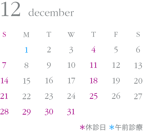 12/28〜1/4は年末年始のため休診とさせていただきます